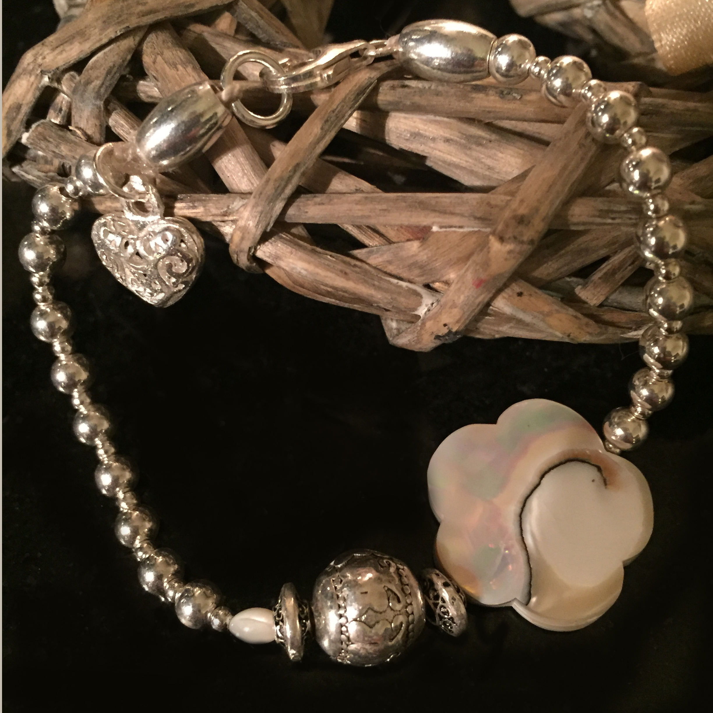 1-reihiges Armband aus Sterlingsilber und Nautilusmuschel