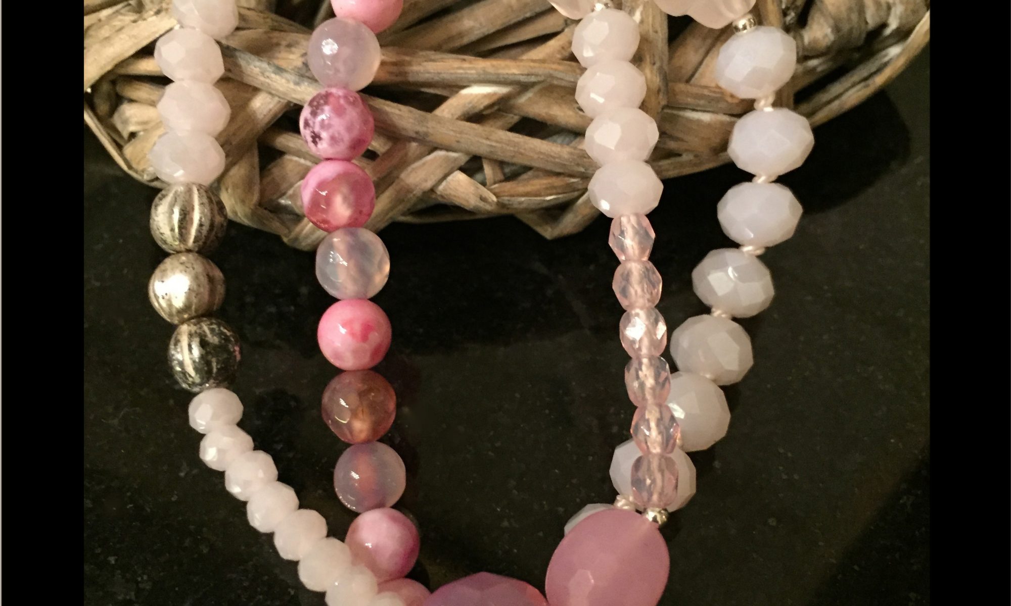 2-reihiges Armband aus Sterlingsilber-, Kristall- u. Perlmuttperlen