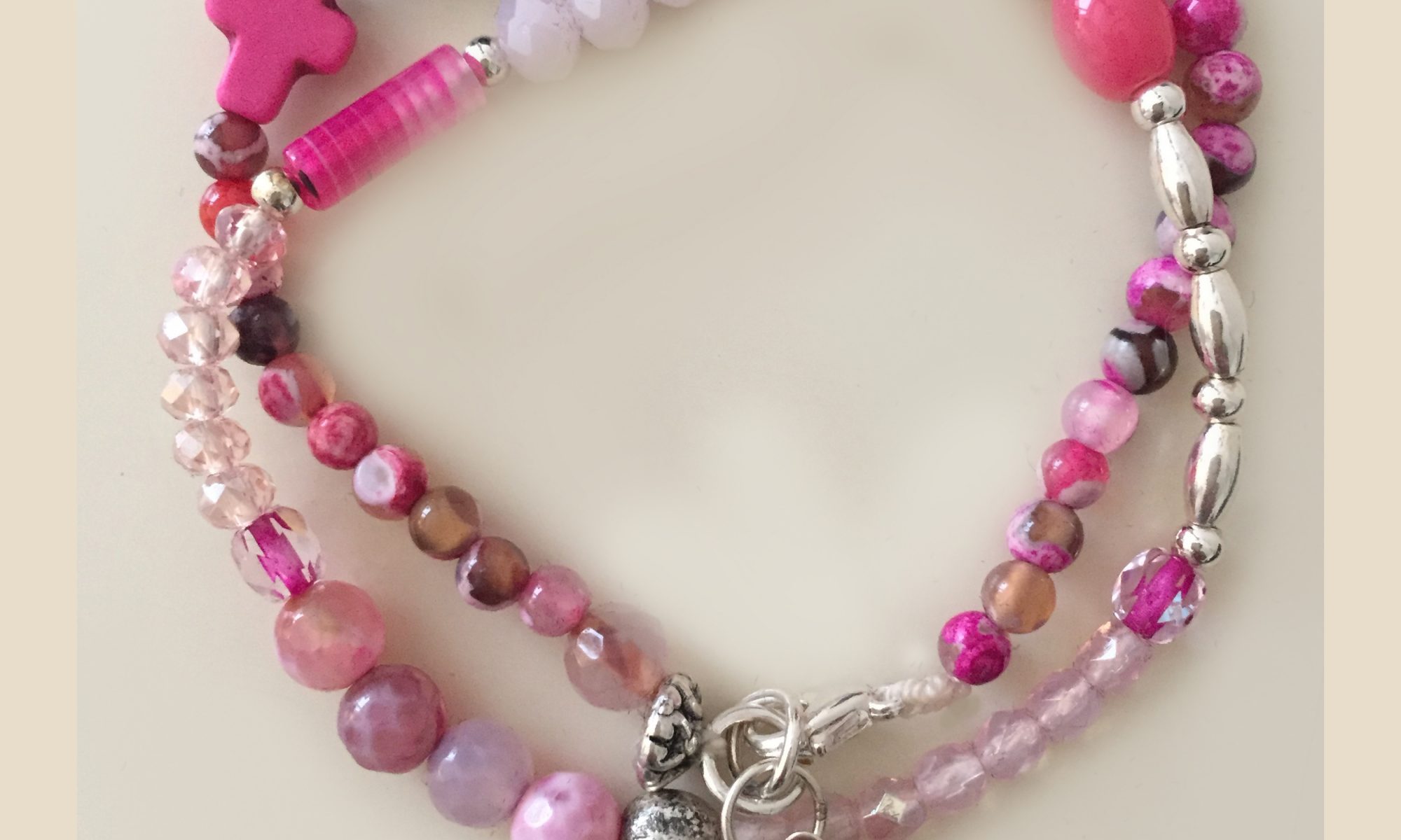 Zweireihiges Armband aus Sterlingsilber- und Achatperlen.
