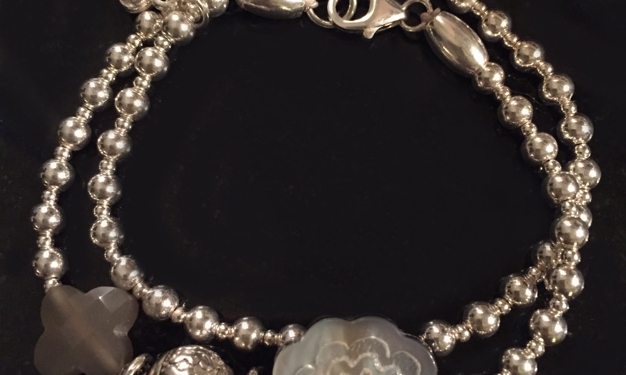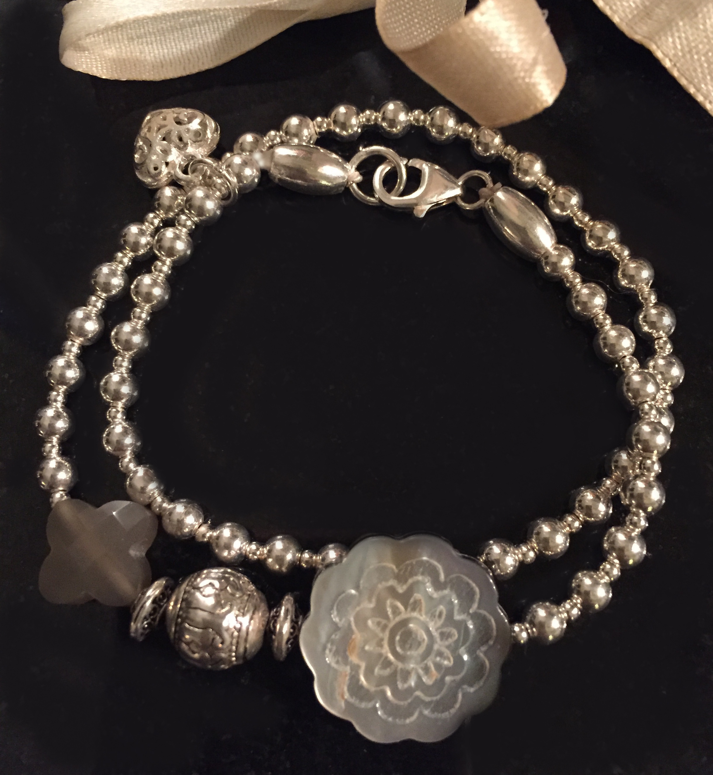 2-reihiges Armband aus Sterlingsilber u. Perlmuttperlen