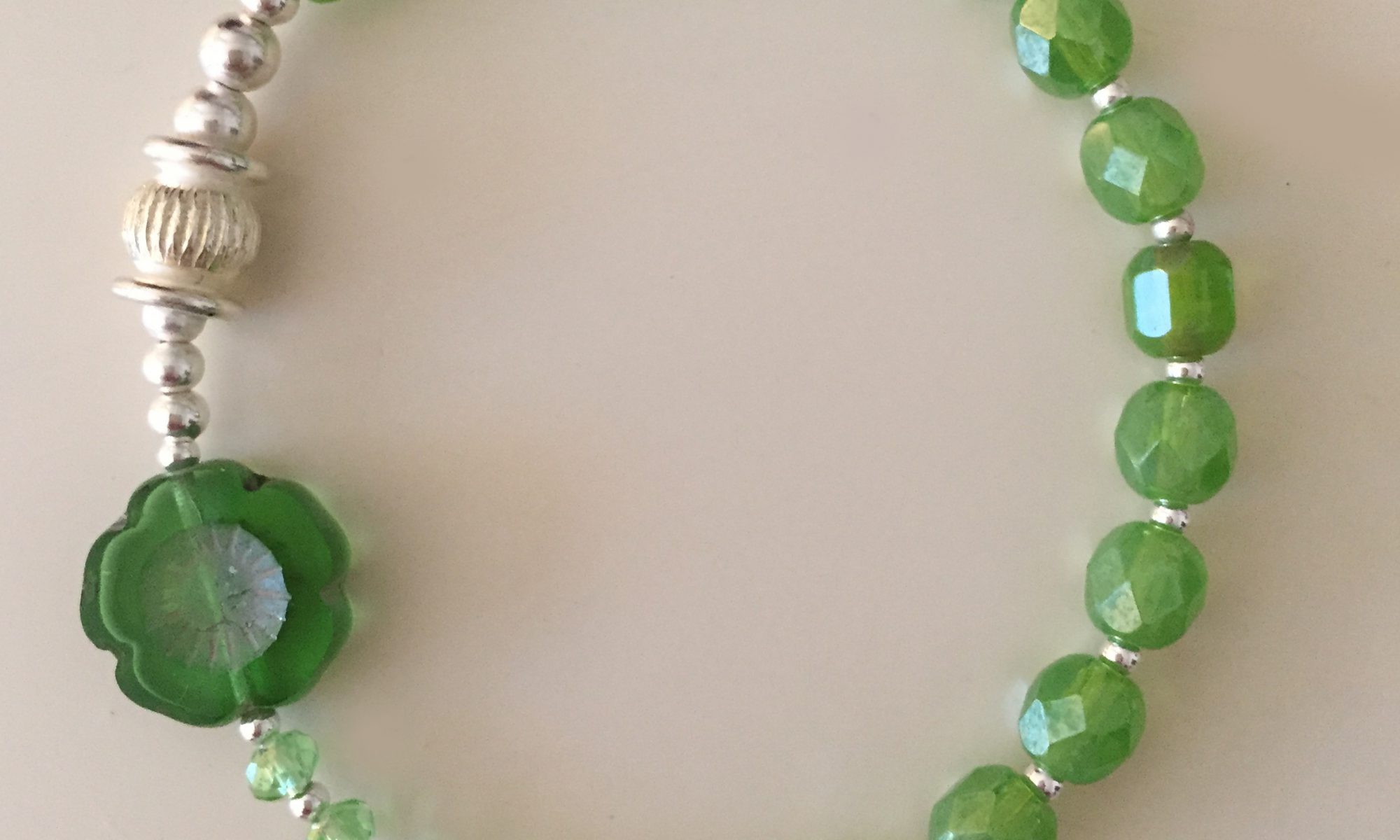 Einreihiges Armband aus verschiedenen böhmischen  Kristall- und Sterlingsilberperlen.