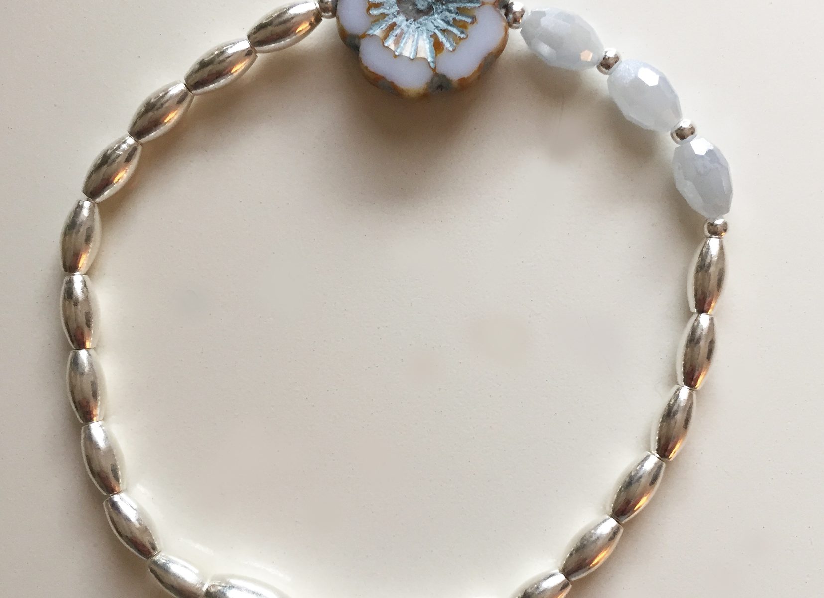 Einreihiges Armband aus Sterlingsilber- und böhm. Glasperlen.