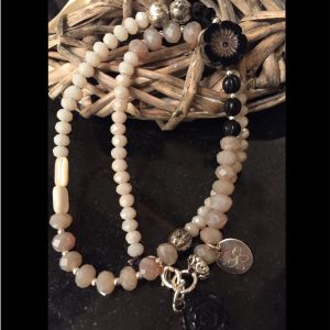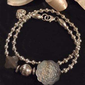 2-reihiges Armband aus Sterlingsilber-, Kristall- u. Perlmuttperlen