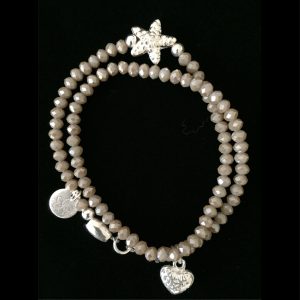 2-reihiges Armband aus Sterlingsilber u. Kristallperlen
